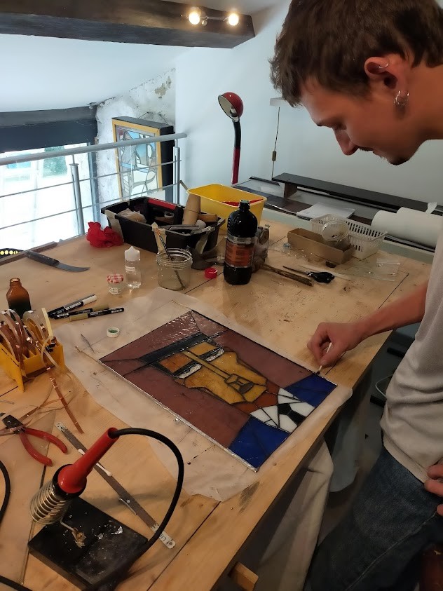 en stage à l'atelier vitrail TOUCOULEUR